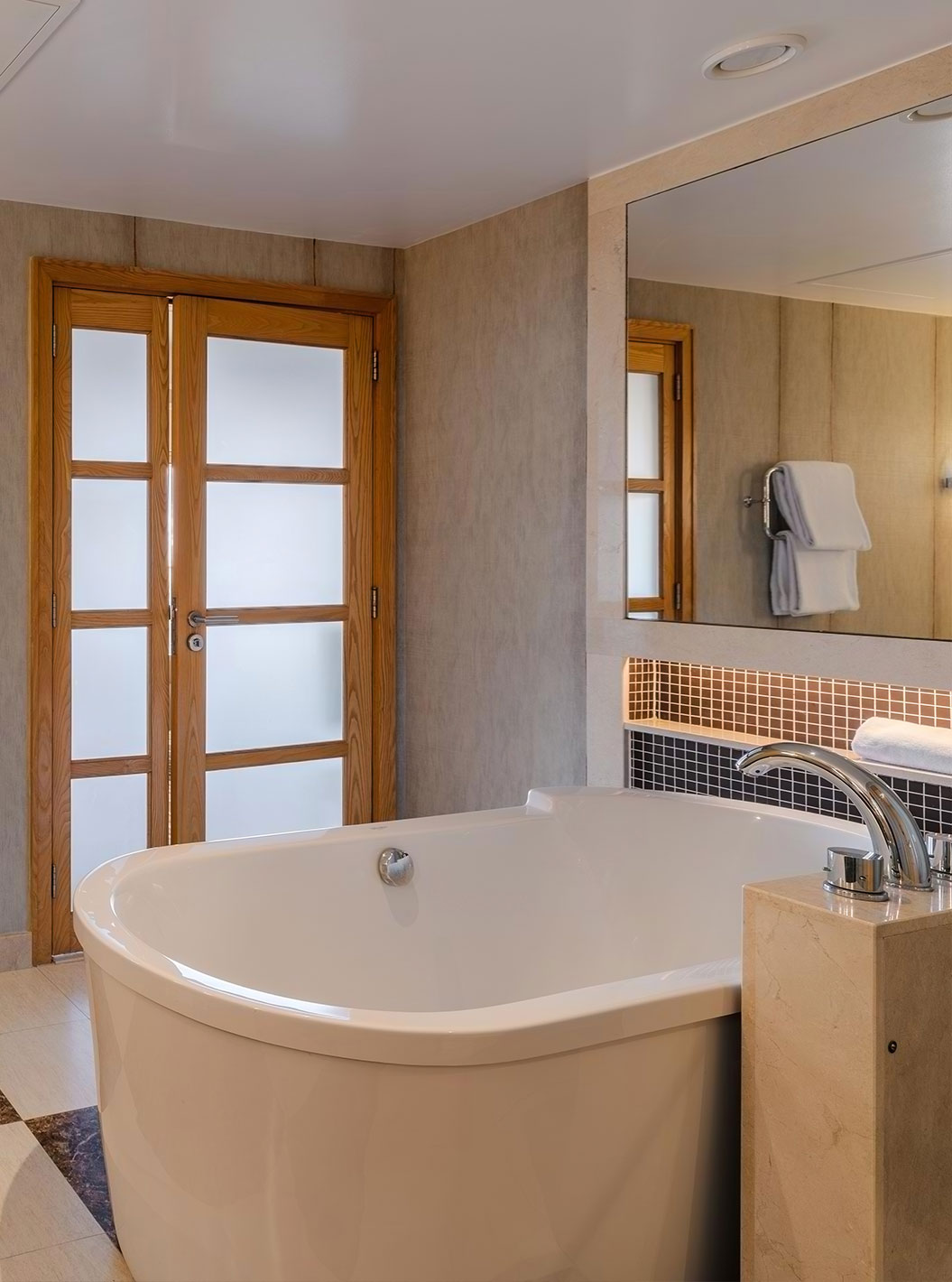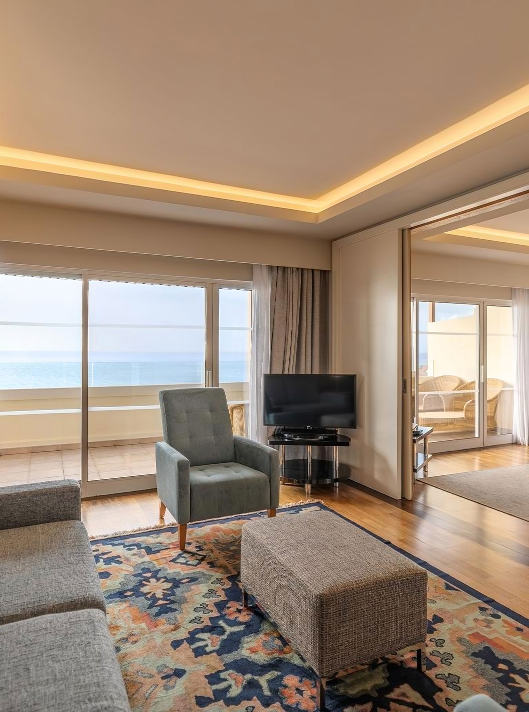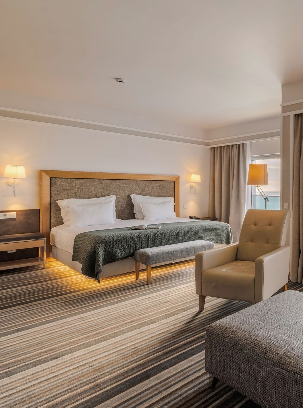 As zonas de relaxamento chamam por si, tal como o ginásio, a sala de massagens e a piscina interior, com as suas dezenas de espreguiçadeiras e vista frontal para o mar.